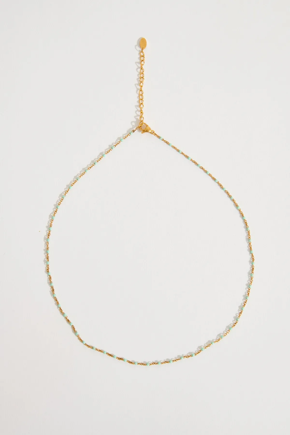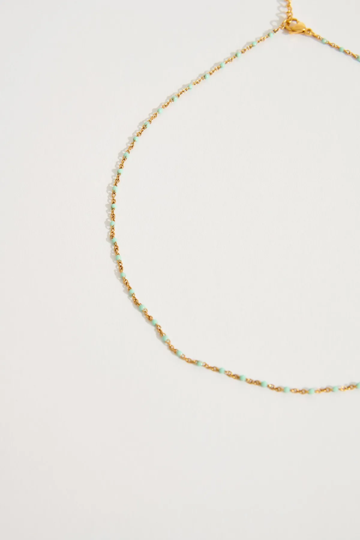 | Détails | • Acier inoxydable plaqué or • Taille ajustable (chaîne d’extension) • Taille 18″ + 2″ d’extension • Livré dans un pochon • Fait à la main aux USA par des artisans • Marque Salty Cali® |