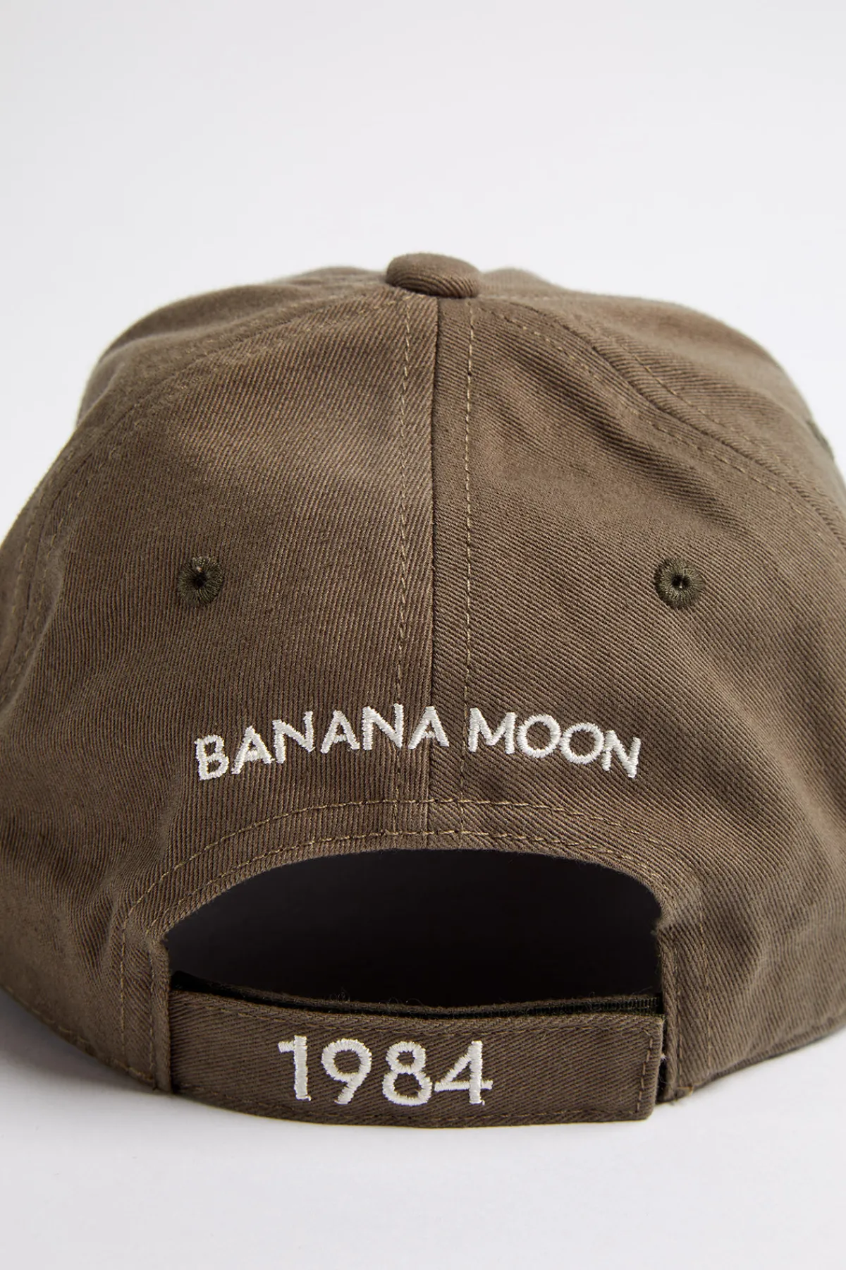 | Détails | • Casquette kaki • Broderie ton sur ton « Banana Moon » • Logo devant et derrière • Fermeture arrière par velcro • Renfort intérieur ton sur ton • Taille unique |