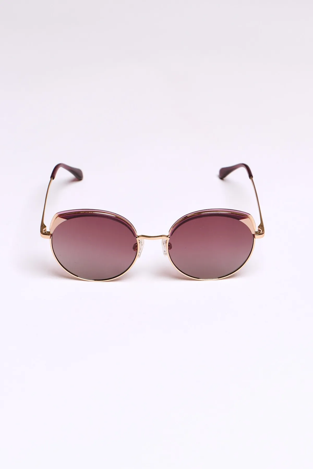 | Détails | • Forme papillon • Verres teintés • Monture coloris doré et violet • Montage cerclé • Protection niveau 3 • Verres polarisés Inclus avec votre paire : un étui |