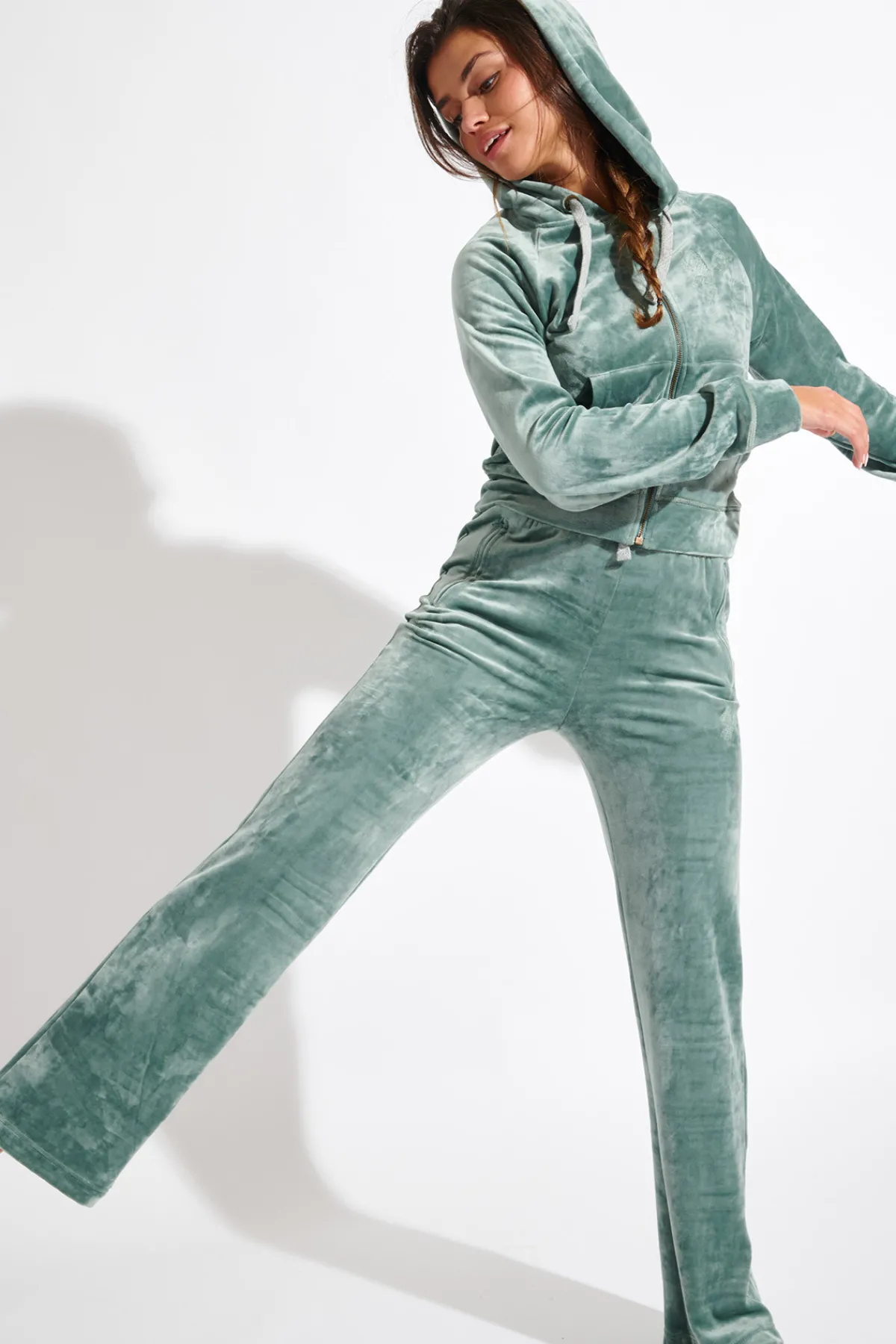 | Détails | • Pantalon de jogging femme • Velours • Taille élastique avec cordons • Coupe droite • 2 poches avec fermeture zip |