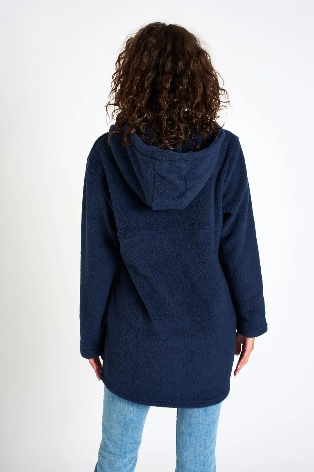 | Détails | • Sweat polaire zippé long à capuche • Fente sur les cotés • Poche ventrale |