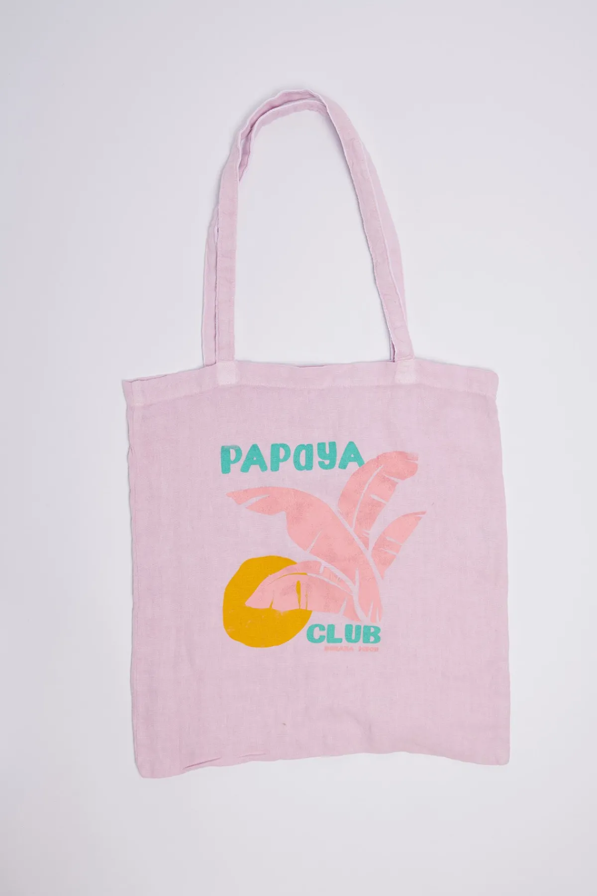 | Détails | • Totebag • 100% lin • Coloris lila • Imprimé Papaya Club • Dimensions : 40cm x 37cm |
