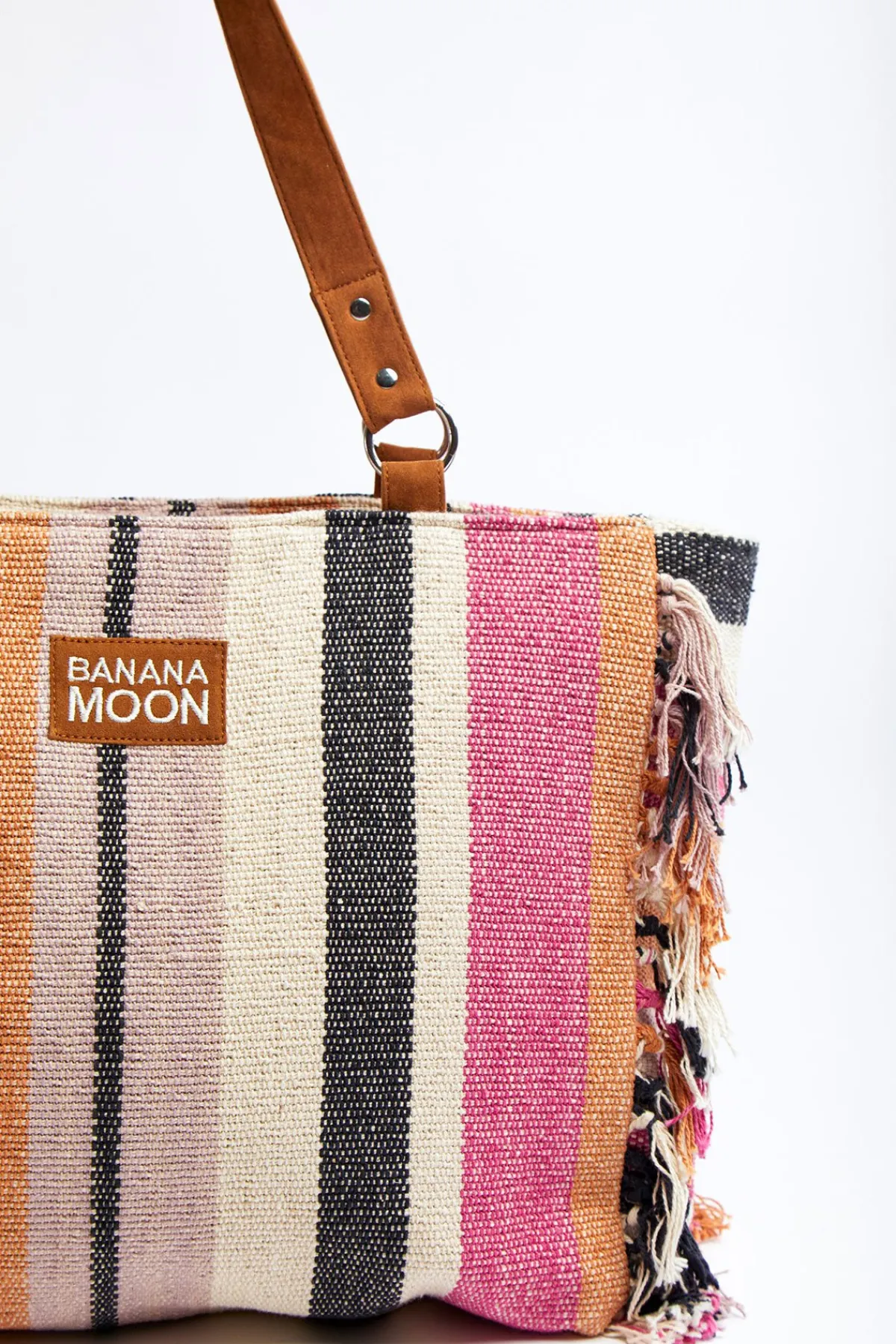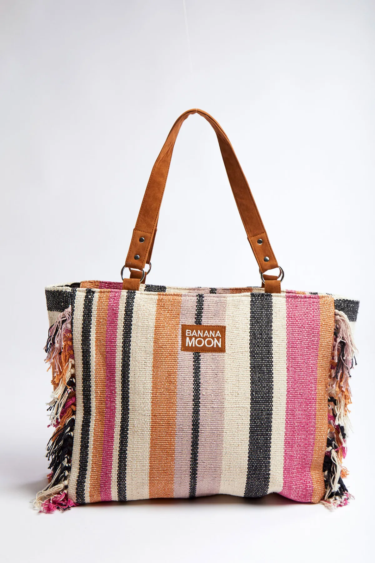 | Détails | • Sac cabas en toile • Coloris rose à rayures • Anses en suédine • Fermeture zippée • Doublure • Finition franges • Poches intérieures • Dimensions : 33,5 x 42 cm |