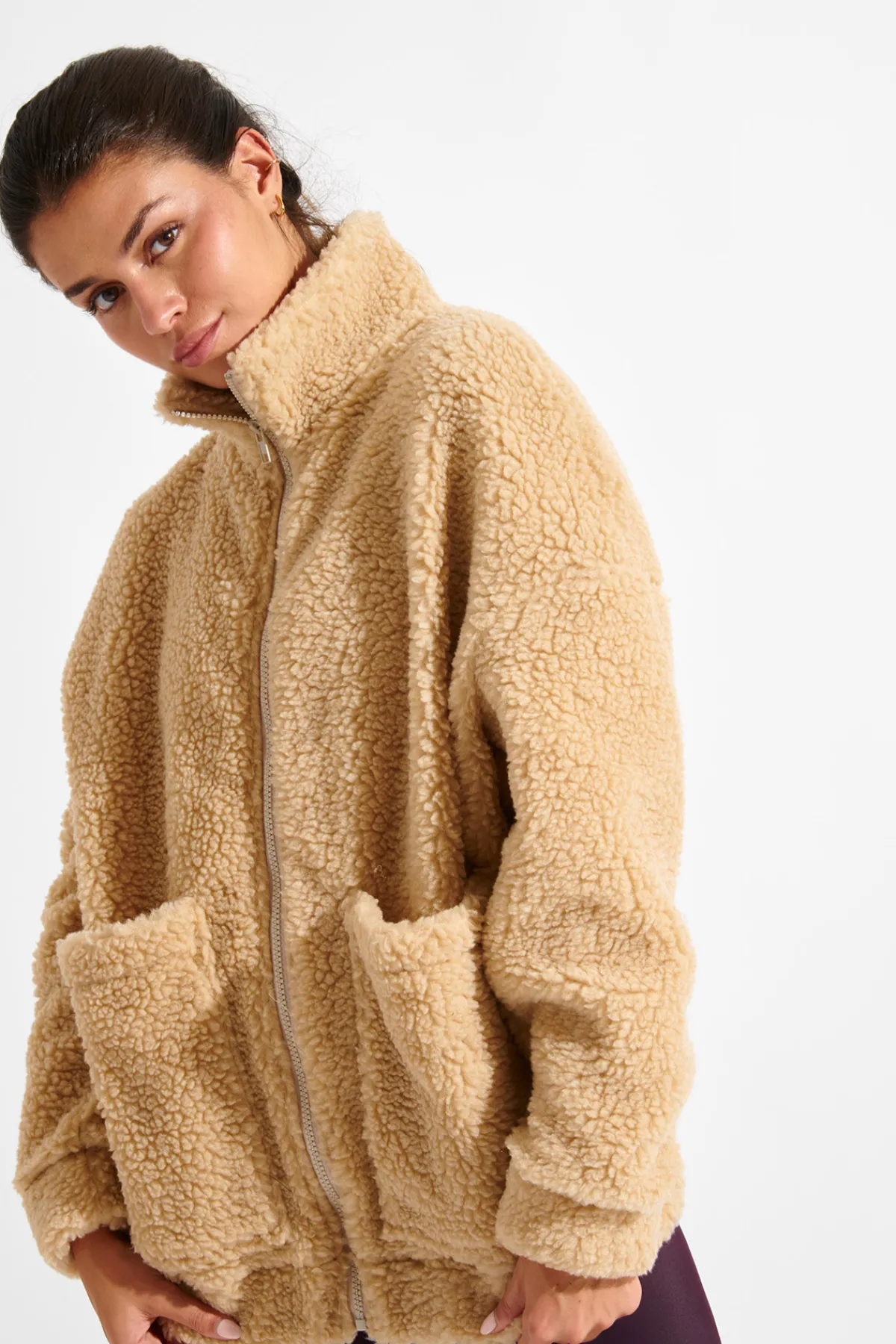 | Détails | • Veste en sherpa • Matière polaire bouclée • 2 grandes poches • Coupe ample • Fermeture zip |