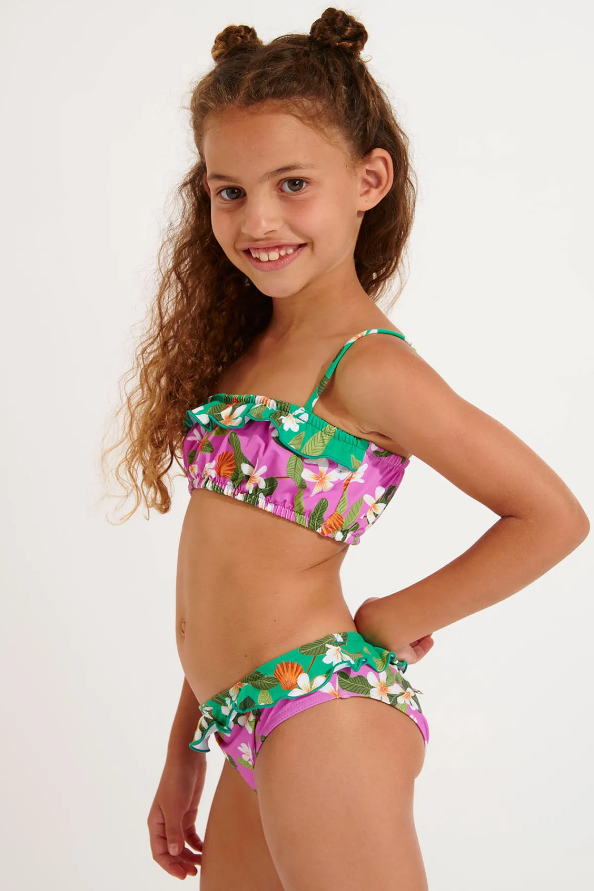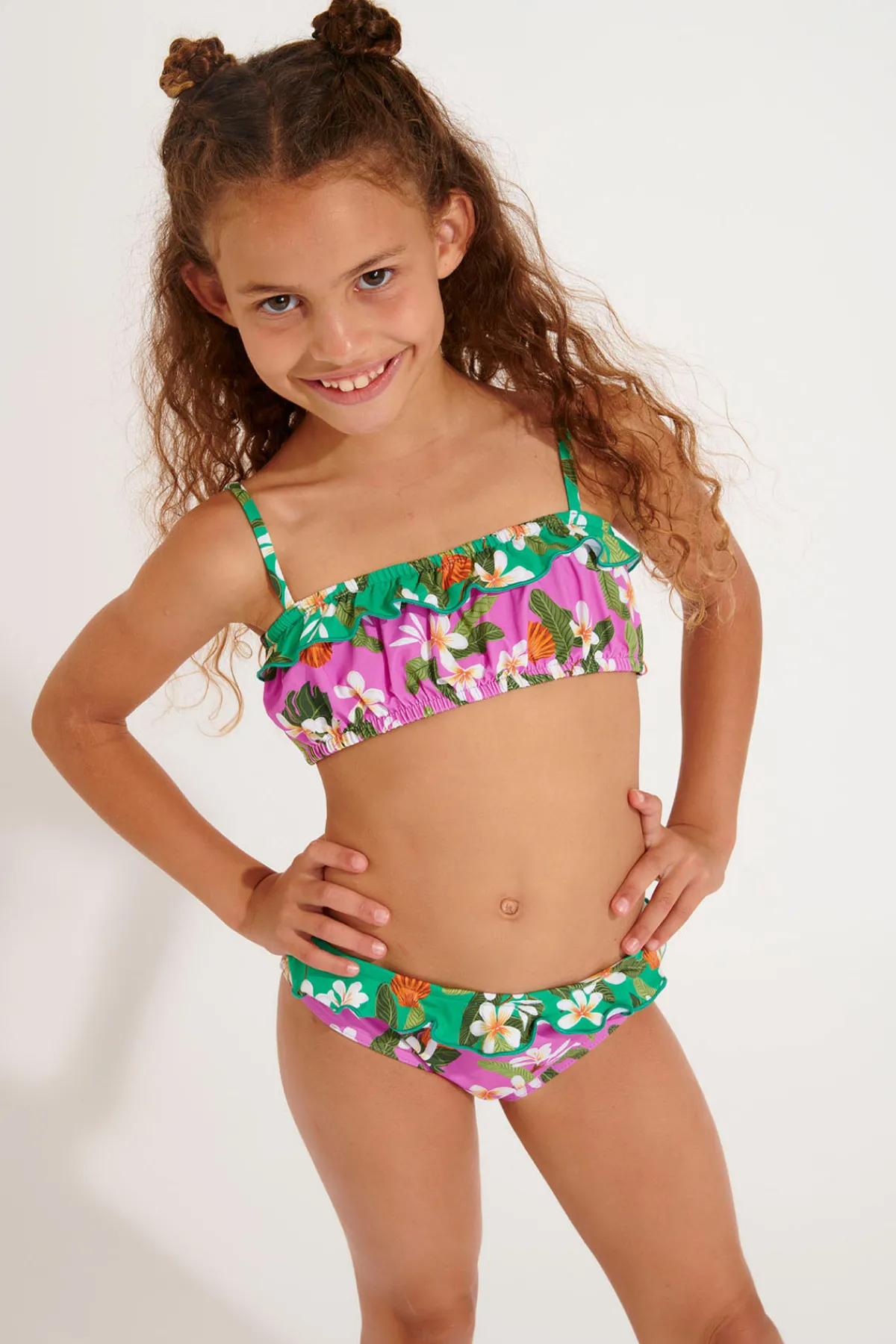 | Détails | • Maillot de bain 2 pièces fillette • Haut brassière élastiqué • Bas de maillot à volants |