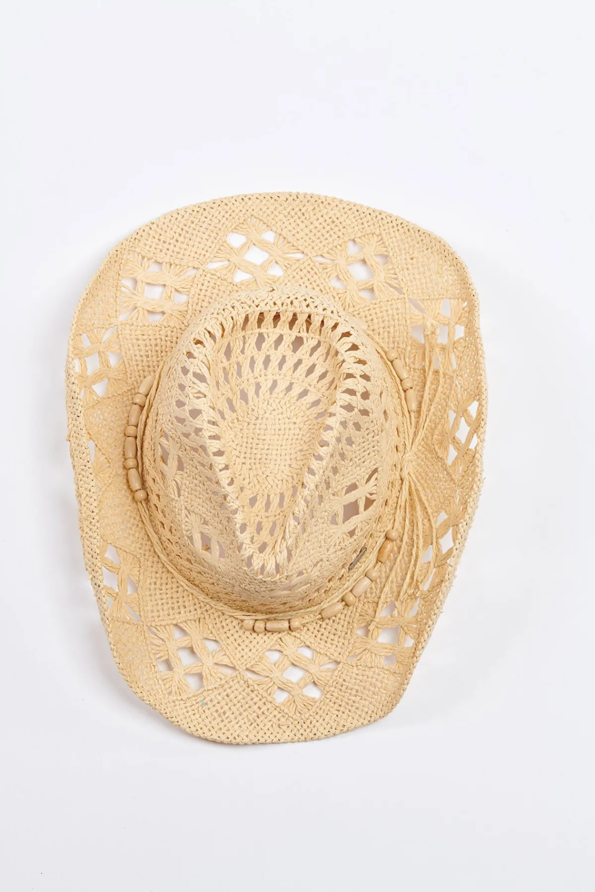 | Détails | • Chapeau femme esprit « cow-boy » • Coloris naturel • Chapeau ajouré • lien avec perles • Taille 1 : 54 -55 cm • Taille 2 : 56 • 57 cm |