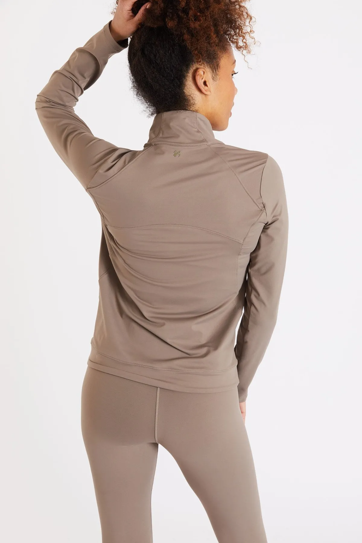 | Détails | • Veste de sport • Coloris taupe • Coupe cintrée • Col montant • Fermeture éclair • Poches latérales avec fermeture éclair • Coutures ton sur ton • Matière respirante et UV protection |
